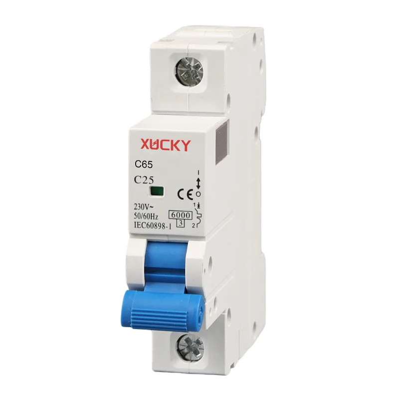 O disjuntor miniatura C65 6KA (também chamado de 6KA Household MCB, semelhante a CHINT NB1-63) é usado para o circuito de CA 50 Hz, tensão nominal de 110 V/230/400 V, corrente nominal de 1A, 2A, 3A, 6A, 10A, 16A, 20A, 25A, 32A, 40A, 50A, 60A, 63A para proteger sobrecarga e curto-circuito, bem como uso para circunstâncias normais de conversão de circuito infrequente, também pode ser usado como chave de isolamento para circuito de corte para proteger circuito e equipamento.